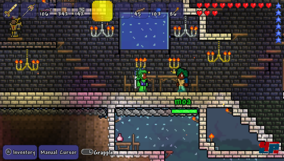 Da Terraria im Wesentlichen inhaltsgleich von Konsole auf Handheld übertragen wurde, verweisen wir an dieser Stelle auf den Test der PS3-Fassung sowie der Vollständigkeit wegen auf den des PC-Originals.