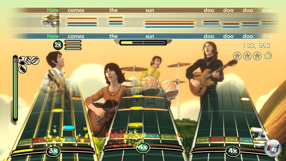 Wie dem auch sei: Natürlich bleibt auch bei der Beatles-Variante des Rock Band-Schemas alles so, wie man es kennt und schätzt: Auf einem „Notenhighway“ rauschen Noten herunter die mit entsprechendem Rhythmusgefühl nachgespielt werden müssen, während für Sänger, wie bei Titeln dieser Art üblich, eine Linie die relative Notenhöhe anzeigt, der man stimmlich möglichst folgen sollte.