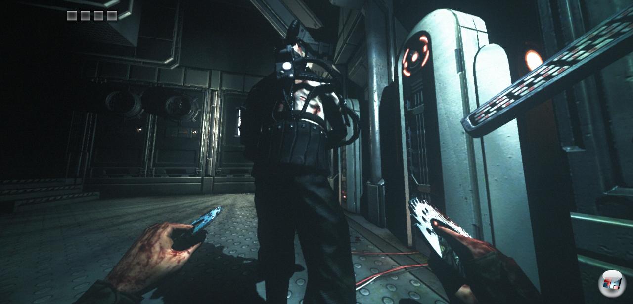 zur Verfügung, die im späteren Verlauf auf bis zu fünf erweitert werden können. Bei jedem Treffer nimmt die Energieleiste innerhalb der Blöcke ab. Geht man in Deckung und wartet einen kurzen Moment, füllt sie sich automatisch wieder auf. Wird die Leiste innerhalb eines Blocks allerdings komplett aufgebraucht, fällt dieser vorerst weg und kann nicht mehr mit der regenerativen Energie gefüllt werden. Erst an Heilstationen darf man sich wieder komplett fit machen, doch ist die Anzahl der Benutzungen beschränkt. Gespeichert wird automatisch an Checkpunkten, was zu einigen Problemen führen kann. Ein Beispiel: Man ist topfit, aber muss in einem fiesen Korridor voller Feinde so viele Treffer einstecken, dass von den anfangs fünf Blöcken lediglich zwei übrig bleiben. Anschließend wird das Spiel automatisch gespeichert – auch am PC, wo es keine Quicksave-Funktion mehr gibt. Doch da vorne wartet schon ein fetter Mech darauf, Riddick das Licht auszupusten. Mit Erfolg! Ich werde also zum letzten Checkpunkt zurückgesetzt und muss erneut mit gerade mal zwei Blöcken einen neuen Versuch starten, denn das Leveldesign ist oft so angelegt, dass ich nicht mehr zur letzten Heilstation zurückkomme oder dort bereits alle Slots aufgebraucht sind. Leider hält der Spielverlauf einige frustige Passagen bereit, die an das klassische Trial and Error-Prinzip erinnern und einen manchmal ratlos zurück lassen. Glücklicherweise hat man aber nicht nur unendlich viele Versuche, sondern darf zur Not auch mitten im Spiel den Schwierigkeitsgrad nach oben oder unten anpassen. Schade ist, dass sehr oft Backtracking zum Einsatz kommt, bei dem man bereits bekannte Schauplätze erneut aufsuchen und sich dabei wieder mit Gegnern herumschlagen muss.