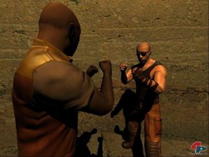 Da es in vielen Räumen im Knast und der sonstigen Umgebung ziemlich düster ist, nein nicht so dunkel wie bei Doom 3, kann sich der fiese Held in der Dunkelheit ungesehen bewegen. Ihr wechselt einfach in den Schleich-Modus und prompt bewegt sich der Muskelprotz fast lautlos. Jetzt nur noch auf Zehenspitzen an den nächsten Gegner anschleichen und „knicks, knacks“ habt ihr euch eines weiteren Problems entledigt.