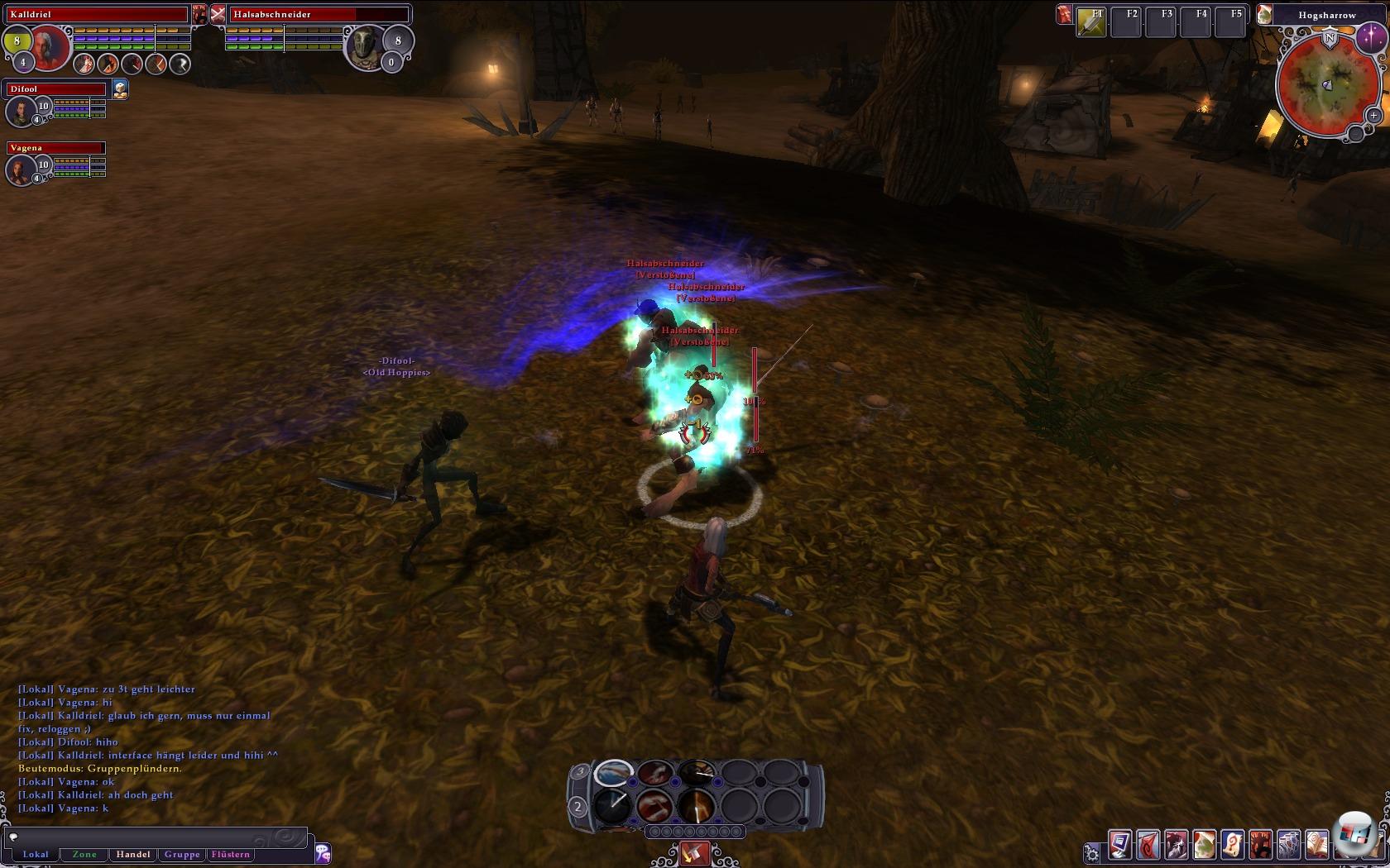 Zurück zu den Quests: Hier schwankt die Qualität gewaltig. Viele Aufgaben erzählen interessante, teils augenzwinkernde Geschichten und offenbaren euch manchmal einen aktiven Blick in die Vergangenheit und bringen mehr Tiefe in die interessante Spellborn-Welt. Neben diesen gelungenen Aufgaben gibt es mindestens ebenso viele der Marke „unspektakulär“: Häufig müsst ihr von einem Ende der Karte bis zur anderen Ecke laufen und da es keine Reittiere und nur eine beschränkte Reisegestalt gibt, verbringt ihr viel Zeit als Bote, wobei die Belohnungen den Zeitaufwand nicht rechtfertigen. Anstatt der Reisezeit hätte man durch Grinden mehr Ruhm verdient. Dazu gesellen sich haufenweise Tötungsaufgaben oder solche Sammelquests wie „Bringe mir zehn fleischige Schweinelenden, weil ich ein fauler Jäger bin“. Die „Dropraten“ solcher Beute gehen in Ordnung und schön ist auch, dass Quest-Gegenstände nicht das Inventar verstopfen, sondern in einem eigenen Behälter aufbewahrt werden.