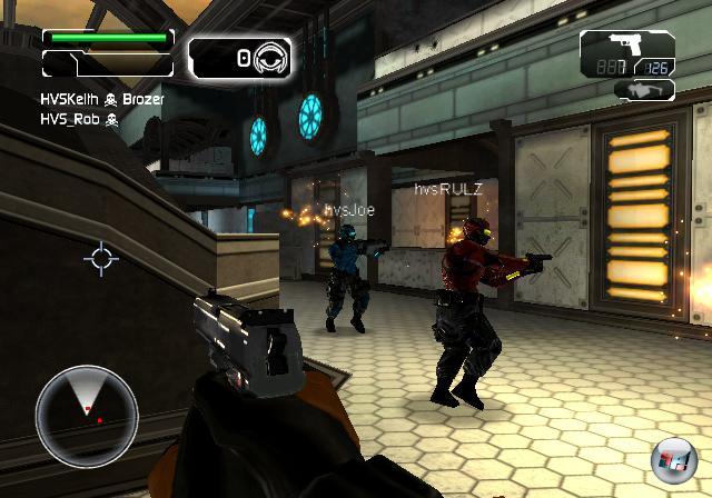 Dass The Conduit nicht im tiefen Wertungskeller eingemauert und vergessen wird, verdankt es einzig und allein dem herausragenden Mehrspieler-Modus, der neue Maßstäbe auf Wii setzt. Erstmals dürfen sich die maximal zwölf Teilnehmer beim (Team-)Deathmatch oder der Eroberung nicht nur gegenseitig mit Kugeln und Strahlenkanonen einheizen, sondern sich dabei dank WiiSpeak sogar miteinander unterhalten. Was auf der 360, PS3 und dem PC zum Standard gehört, ist auf Wii leider immer noch die Ausnahme, doch vielleicht trägt The Conduit dazu bei, dass es auch hier endlich die Regel wird. Doch damit nicht genug: Hier findet man sogar ein Rangsystem und den Versuch, durch Matchmaking ebenbürtige Spieler zusammen zu würfeln. Die traditionellen Online-Lobbys gibt es hier allerdings nicht. Stattdessen wird man ähnlich Mario Kart automatisch eingeteilt, während Karte und Waffenarsenal durch eine Abstimmung der Teilnehmer entschieden werden. Das gilt auch für den Spielmodus, denn neben dem klassischen „Jeder gegen jeden“ und Team-Deathmatch hat The Conduit noch sehr viel mehr zu bieten. So jagt man beim chaotischen „ASA-Rugby“ dem Spieler hinterher, der momentan das allsehende Auge in den Händen hält und sich folglich nicht wehren kann – dazu verrät aber ein Radar seine aktuelle Position. Auch für eine Variation von Capture the Flag muss das Gadget herhalten, während man bei „Kopfgeldjäger“ bestimmte Ziele erfüllen muss, um Punkte zu sammeln. Daneben stehen auch Ausscheidungsspiele zur Auswahl, bei denen die Teilnehmer maximal nur drei oder zehn Respawns zur Verfügung haben. Wer sich lieber mit Freunden misst anstatt wahllos in Online-Sessions geworfen zu werden, hat auch die Möglichkeit, ein privates Spiel anzulegen, an dem nur Spieler auf der eigenen Freundesliste (mit Wii-Codes) teilnehmen können. Allerdings gilt auch hier die Regel, dass Bewaffnung, Modus und eine der insgesamt sieben Karten per Abstimmung festgelegt wird, doch kommt man unter Freunden sicher besser auf einen gemeinsamen Nenner als mit Fremden. Die Performance ist hervorragend: Selbst mit der maximalen Spielerzahl war der Spielablauf erstaunlich flüssig – störende Lags traten nicht auf. Gut, die Kulissen sehen auch im Mehrspieler-Modus schwach aus und stammen überwiegend direkt aus der Kampagne, aber trotzdem gebührt den Entwicklern aufgrund des stabilen Netzcodes und der gelungenen Auswahl an Modi Lob. Schade ist nur, dass man nicht auch an solche Leute gedacht hat, die sich auch gerne im Splitscreen gegenseitig die Hölle heiß machen.