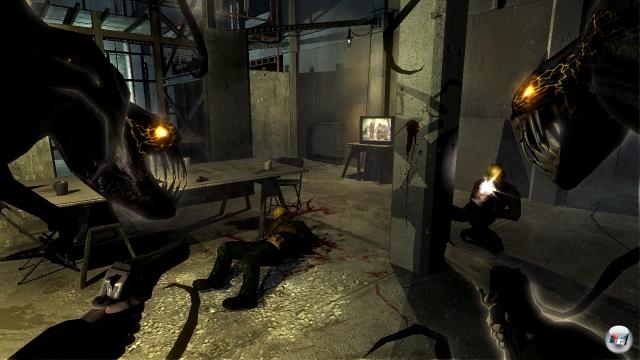 Daher sind konventionelle Gefechte zunächst recht statisch und knifflig: Manchmal trifft man seine Feinde mehrere Male, sie brechen zusammen und stehen wieder auf. Und manchmal treffen euch Kugeln aus heiterem Himmel und ihr seid sofort tot. Aber was wie ein gewöhnlicher Mafia-Shooter beginnt, entwickelt sich plötzlich zu einem Horrortrip, der euch gleichzeitig dämonische Fähigkeiten spendiert und eine verstörende dämonische Stimme in eurem Kopf platziert: