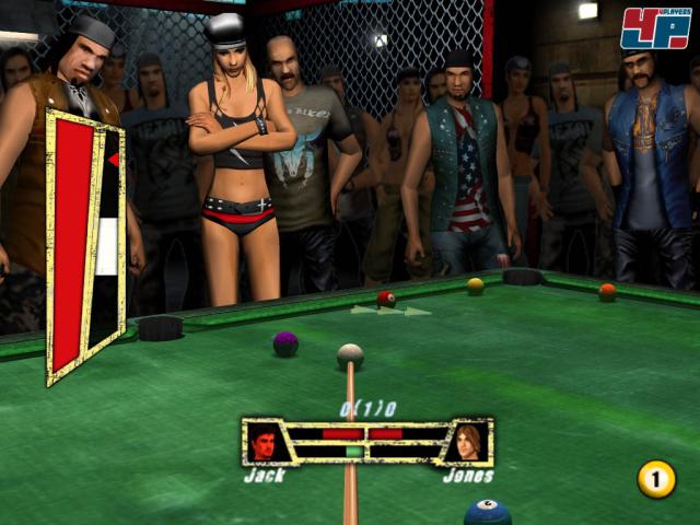 Habt ihr mehrere Kugeln erfolgreich versenkt, füllt sich auch der Intuitionsbalken, dank dem ihr der Kugel einen extrastarken Drall verpassen könnt. Wer noch näher an das echte Spielgefühl einer Pool-Partie herankommen möchte, darf den Queue sogar direkt mit dem Analogstick stoßen. Dazu zieht ihr den Knubbel vorsichtig nach hinten, um die Stärke einzustellen und bugsiert den Stick genau dann nach vorne, wenn sich das tickende Pendel über der Markierung befindet. Um das Spiel herum wurde übrigens eine kleine Story gebastelt, welche die Geschichte eures Stehaufmännchens Jack in kleinen Filmschnipseln erzählt. Das Billard-Ass hat in Philadelphia alles verloren und zieht nun in Detroit durch die Spelunken, um mit seinem Spiel die dicken Bossgegener auf sich aufmerksam zu machen und abzukassieren. In den Pubs fordern euch potentielle Gegner zu einer der zehn Billard-Varianten wie 8-Ball, 9-Ball und 6-Ball, Bank Pool und Rotation Pool heraus. Manchmal dürft ihr euch auch bei einem der zahlreichen Trickshots euer Glück beweisen. Setzt einen Teil eures Geldes und lasst die weiße Murmel über den Tisch hüpfen, um damit bestimmte andere Kugeln stilvoll zu versenken.