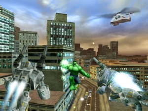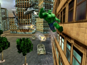 Schläge hernach noch verheerender wirken! Witzig ist auch die Möglichkeit, Raketenmagazine zu zerbrechen und mit dem einzelnen Geschossen z.B. nach Hubschraubern zu werfen. All das und viel mehr wird euch im einleitenden Tutorial beigebracht, welches euch ausführlich Hulks Spezialfähigkeiten üben lässt. Danach könnt ihr zu gigantische Sprüngen ansetzen, beim Laufen alles aus dem Weg dreschen, Kombos schlagen, wie King Kong an Häusern herumklettern oder wie der persische Prinz an ihren Wänden umherlaufen. Außerdem lassen sich die meisten Aktion wunderbar kombinieren: Schnappt euch einen Truck, wählt einen vorbeifliegenden Hubschrauber als Ziel, springt aufgeladen nach oben, schmeißt das Fahrzeug auf den Heli, erfasst während des Falls einen weiteren Hubschrauber, ladet einen mächtigen Schlag auf und batscht ihn mitten im Flug aus der Luft!