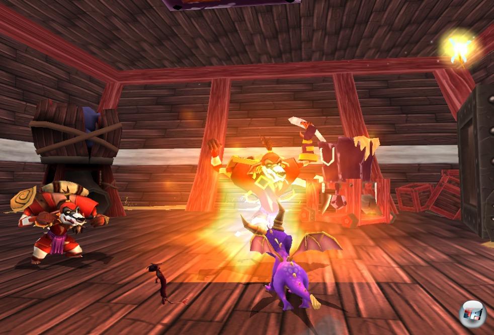 Doch zuerst muss Spyro seine alten Kräfte wiedererlangen, die ihr allesamt bereits aus dem Vorgänger kennt. Erst, wenn er wieder Herr über Feuer, Eis, Blitz und Erde ist, kann er sich Graul stellen. Und so wiederholt sich quasi das gleiche alte Spielchen wie im letzten Teil, nur mit leicht veränderten Gegnern und Schauplätzen. Einmal mehr durchstreift ihr hoffnungslos lineare Spielabschnitte, prügelt euch mit beschränkten Affen und anderen Widersachern und macht euch schrittweise die Kräfte der vier Elemente zu eigen. Die individuell aufstufbaren Angriffe haben sich zwar leicht verändert und neuerdings könnt ihr auch kurzfristig die Zeit verlangsamen, aber im Prinzip ist alles beim Alten geblieben, was aufgrund des recht bescheidenen letzten Teils natürlich alles andere als erfreulich ist…