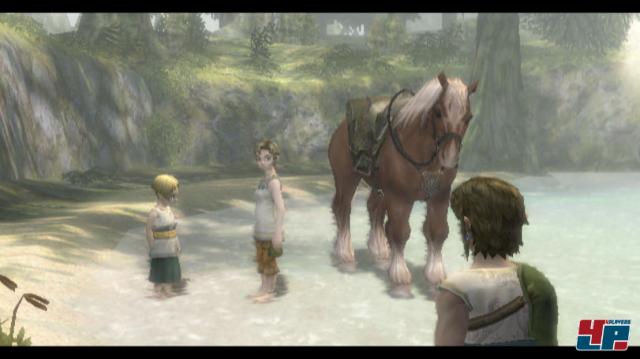 Mutterversion? Man merkt Zelda sehr schnell an, dass es für den GameCube entwickelt wurde: Es gibt keine Sprachausgabe, nur eine Art Stimmimitation mit deutschen Textboxen. Das hat zwar Tradition, das mag Nostalgiker freuen, aber muss man das auch auf dem Wii so fortführen? Mimik und Gestik? Weitgehend Fehlanzeige. Immerhin: Man gewöhnt sich daran und nach zwei, drei Stunden wird auch ohne Sprecher und fortschrittliche Gesichtsbewegung eine emotionale Stimmung aufgebaut: Die Augen, das Figurendesign, die vielen liebevollen Szenen – all das kann die technischen Schwächen aufwiegen. Hinzu kommen die ebenso bekannten wie geliebten Klingelingmelodien, die Veteranen in null Komma nichts in die alte Zeit versetzen, wenn sie eine Schatzkiste öffnen oder ein Geheimnis lüften.