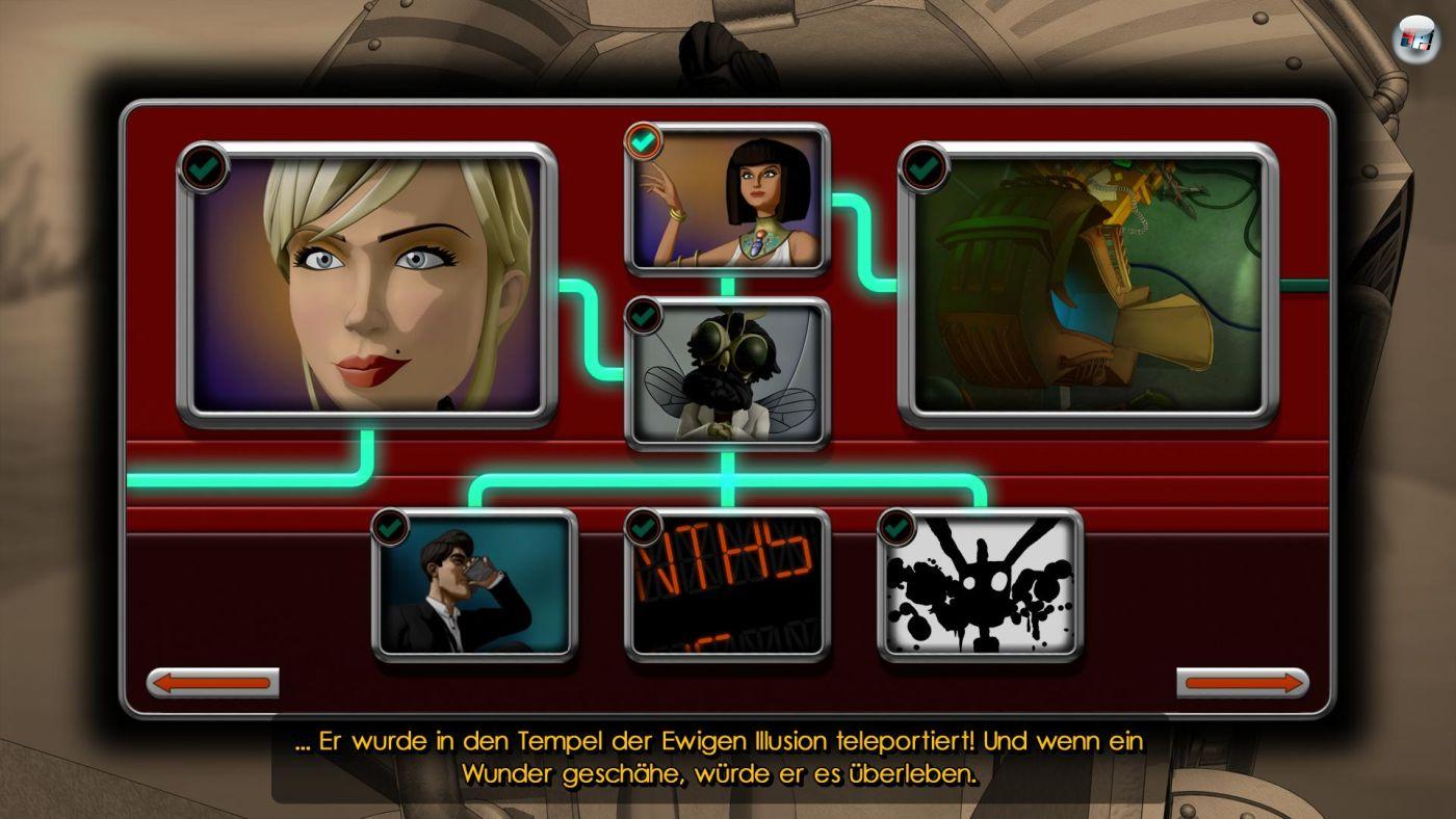Die Suche nach seiner Kollegin führt Dan auch in einen gigantischen »Tempel der Illsuionen« in ägyptischem Stil. Dort muss der Frauenheld z.B. eine zum Leben erwachte Mumie mit erstaunlich viel Sex-Appeal bezirzen. Neben nicht gerade komplexen Inventar-Puzzles wartet hier auch ein Hieroglyphen-Rätsel, bei dem ich schon etwas mehr um die Ecke denken musste.