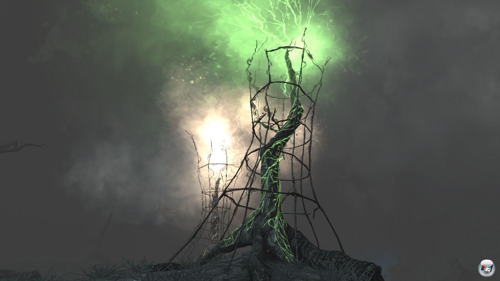 In der verkohlten Einöde steht ein krummer Baum, aus dessen verdörrten Ästen weiße Lichtstrahlen entweichen. Aus der Ego-Perspektive laufe ich zum Stamm Stamm des Gebildes. Dort erwartet mich eine so genannte »Fürstin«, deren halbnackte Silhouette nur von gleißenden Lichpunkten verhüllt wird. Früher erblühte ihre Welt in allen Farben des Regenbogens, erzählt sie. Doch seit meine Spielfigur im Koma liegt, sind entstellte Kreaturen, sogenannte »Wächter« aus der Welt der Albträume emporgestiegen und unterdrücken die vor sich hin siechenden Schwestern, indem sie ihnen die lebensnotwendige Farbe entziehen.