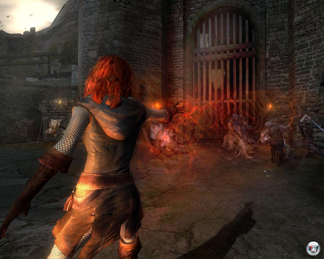 Und obwohl das Spiel mit seinen flotten Echtzeitkämpfen zunächst wie ein Action-Adventure à la Prince of Persia anmutet, entwickelt es sich spätestens im ersten Kapitel zu einem echten Rollenspiel mit zig Quests und lebendigen Gesprächspartnern. Die Bewohner zeigen sich mit ihren Schwächen für Alkohol, Sex und Drogen ähnlich menschlich wie im derben Gothic – das sorgt schnell für einen ganz eigenwilligen Charme. Dadurch, dass eine Gemeinschaft von Bestien bedroht wird und immer wieder Menschen verschwinden, fühlt man sich unweigerlich an den Pakt der Wölfe erinnert – auch hier entsteht diese prickelnde Mischung aus bösen Ahnungen, martialischen Kämpfen und Aberglaube. Überraschend gut wirkt auch der Alltag auf den Straßen: Katzen stromern, Hunde bellen, Kinder spielen, Kaufleute wandern umher, Frauen fegen, Tauben fliegen auf, Enten gackern, Schmiede hämmern – all das nimmt man nebenbei auf und all das sorgt dafür, dass die Spielwelt trotz ihrer Grenzen sehr lebendig wirkt. Wenn sich plötzlich ein Dörfler unter Magenschmerzen krümmt oder drei finstere Gestalten eine Frau bedrängen, lohnt sich vielleicht das Eingreifen…