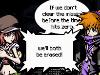 | Ein Team, das erst geformt werden muss: Neku und Shiki zoffen sich zu Beginn wie zwei Streithähne. Kann man dem Mädchen überhaupt trauen? Egal: Als die Hand das Zeitlimit für den ersten Auftrag anzeigt muss man zusammen los…in eine bizarre Großstadt-Comicwelt! |