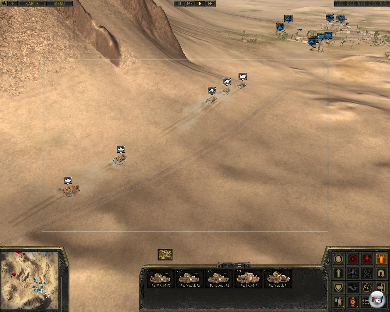 Flieger verfügen. Zum Glück sind es nur leichte M3 Stuart, die keine Chance gegen meine Panzer IV mit Langrohr haben. Allerdings hat man noch lange nicht gewonnen, denn nun heißt es das Dorf beim Faidpass zu nehmen. Zuvor empfiehlt es sich, den Wüstenort aus allen Rohren zu beschießen oder aus der Luft bombardieren zu lassen. Denn nur so schaltet man die feindlichen 105 mm-Geschütze aus, die der Infanterie herbe Verluste beibringen können. Auch die feindliche 40 mm-Flak ist gefährlich – besonders für leichte Panzer, die als Späher dienen.