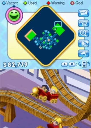 Ganz abgesehen davon, dass man auf 360, Wii, PS2 und PC trotz einer kaum spürbaren Herausforderung auch Finanzen sowie Zufriedenheit der Gäste im Auge behalten musste. Beides fällt am DS unter den Tisch: Fahrgeschäfte und Spielbuden sind immer erschwinglich und rentieren sich umgehend. Gar nicht erst näher benannte „Upgrades“ sind die einzige Möglichkeit, die Attraktion zu erweitern. Zudem darf man den Preis für die Besucher nicht selbst bestimmen. Es gibt lediglich einen Schieberegler mit drei Stufen; je nach Einstellung macht die Attraktion mehr Geld oder mehr Thrills – wirft der Park ausreichend Thrills ab, öffnet schließlich ein neuer seine Tore.