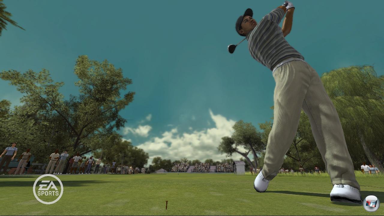 Weil sich die restlichen Neuerungen in Grenzen halten, bleibt es denn auch bei einem vorsichtigen Update in Sachen Präsentation und Steuerung. Immerhin: Dass Draw und Fade jetzt über die Schultertasten schon vor dem Schlag bestimmt werden, ist eine gelungene Idee. Sie macht den Abschlag nicht einfacher, aber leichter planbar. Außerdem reicht ein einfacher Tastendruck und schon befindet sich die Kamera an dem Punkt, auf dem der Ball landen soll. Der langwierige Zoom zum Zielpunkt fällt damit weg – vorbildlich! Zudem gönnen die „Football-Entwickler“ ihrem Golfeinstieg auch die vom PC bekannte Drei-Klick-Steuerung. Wer mit dem True Swing nicht klar kommt, erhält damit eine scheinbar simple, aber trotzdem fordernde Alternative. Die Putt-Vorschau darf man ab sofort übrigens nur einmal ansehen. Dafür hat man alle Zeit der Welt, um den Weg vom Schläger zum Loch zu analysieren. Gelungen ist auch das an für den Tiger neue EA Sports-Einheitsoutfit: Wird ein Spiel gestartet, fährt die Kamera in eine große Leinwand, die Menüs sind minimalistisch schick und übersichtlich – die frische Präsentation bittet direkt zum Abschlag.