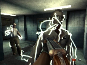 | Mit den Elektro-Zombies ist nicht zu spaßen. Hier hilft nur ein gezielter Kopfschuss mit der Schrotflinte. |