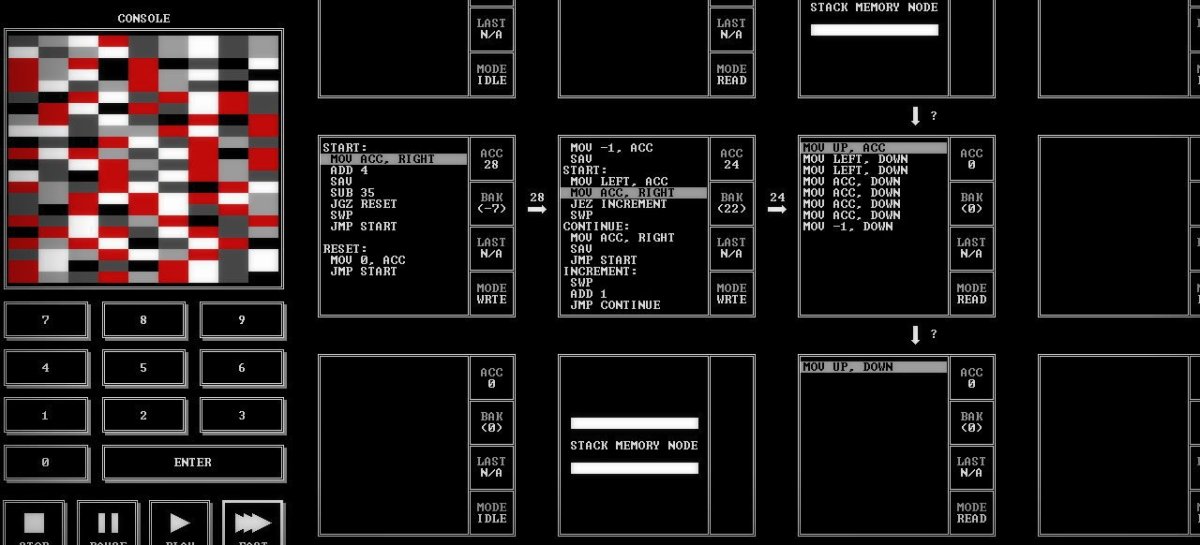 Minimalismus im Extrem: Auf einer schwarz/weißen Oberfläche erlebt man kein Abenteuer, löst keine Rätsel. Man programmiert die Lösung komplexer Aufgaben. Statt einer Erfolgsmeldung folgt eine Statistik über den Rechenaufwand des fertig geschriebenen Programms. TIS-100 fordert die grauen Zellen. TIS-100 ist Arbeit. Wo steckt da der Spaß?