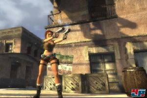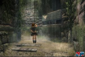 Ab und zu gibt es auch kleine Reaktionstests: Ein Button blinkt auf und ihr müsst ihn schnell drücken, damit sich Lara z.B. rechtzeitig duckt. Diese Quick-Time-Reactions können ein Abenteuer auflockern und bereichern, weil sie den Spieler quasi in eine interaktive Filmsequenz werfen. Aber das, was in Shenmue <a class="DYNLINK" onmouseover="DynToolTipp_Show('Klicken für Gameinfos‚)“ onmouseout=“DynToolTipp_Hide(); “ href=“javascript:DynCont_Display(‚Gamefinder‘,’runmod.php?sid=%7BSID%7D&LAYOUT=dyncont_gf&spielid=548′)“>, Resident Evil 4 <a class="DYNLINK" onmouseover="DynToolTipp_Show('Klicken für Gameinfos‚)“ onmouseout=“DynToolTipp_Hide(); “ href=“javascript:DynCont_Display(‚Gamefinder‘,’runmod.php?sid=%7BSID%7D&LAYOUT=dyncont_gf&spielid=3440′)“> oder kürzlich in Fahrenheit <a class="DYNLINK" onmouseover="DynToolTipp_Show('Klicken für Gameinfos‚)“ onmouseout=“DynToolTipp_Hide(); “ href=“javascript:DynCont_Display(‚Gamefinder‘,’runmod.php?sid=%7BSID%7D&LAYOUT=dyncont_gf&spielid=2173′)“> für packende Momente gesorgt hat, wird hier zur kinderleichten Lachnummer. Erstens blinkt meist nur ein Icon auf, zweitens