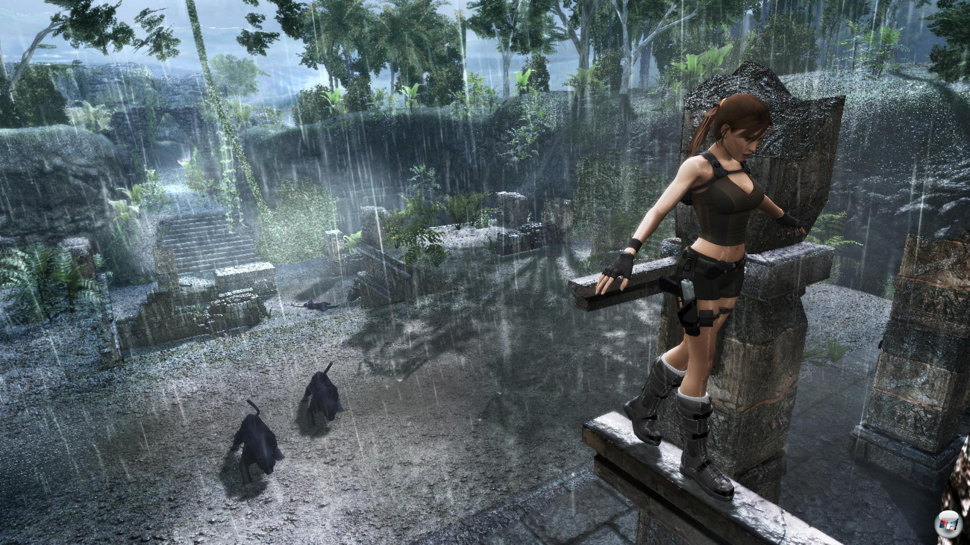 Anstatt das Abenteuer wirklich konsequent auf Erkundungsreize auszulegen, anstatt eine möglichst unberechenbar wirkende Welt zu kreieren und die Rolle des Lara Croft in eine intelligentere und anspruchsvollere Richtung zu entwickeln, serviert Crystal Dynamics zudem erschreckend billige und primitive Momente. Das fängt schon bei Kleidung und Animationen von Lara an und hört bei ihren naiven Kommentaren mit Rehblick auf: Warum muss sie wie ein Schimpanse ihren nur von einem Fetzen Neopren geteilten Hintern immer wieder penetrant in die Kamera strecken? Soll das sexy sein? Nichts gegen attraktive Polygonladys, aber hier wird Lara einfach billig inszeniert. Man muss sich fragen, ob man das Image als Sexsymbol oder als Videospielcharakter stärken will. Für Lara wäre Letzteres wesentlich wichtiger, denn die Zeit, in der man mit polygonalen Titten und Ärschen vielleicht noch faszinieren konnte, weil es neu war, sind eindeutig vorbei.