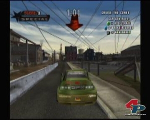 Frischwind Nummer 2 sind die Fahrzeuge. Man muss Neversoft zugute halten, dass sie wirklich einen interessanten Fuhrpark präsentieren: getunte Sportkarre, durchgerosteter Kübel, Blumenwagen, Laubbläser oder Stretchlimo. Auch die dazugehörigen Missionen sind recht witzig – mal müsst ihr einen Motor erhitzen, und die Karre anschließend in der Bucht versenken, mal Stände von Nusshändlern zerschmettern. Natürlich erwarten euch auch Rennen und Checkpunkt-Abklapperaufträge. Doch all das nützt im Endeffekt nichts, weil sowohl Steuerung als auch Fahrphysik der Vehikel gründlich in die Hose gingen. Zudem verfügen die nett modellierten Autos merkwürdigerweise über keinen Schatten, was sie irgendwie deplatziert aussehen läst. Insgesamt sind die Fahrzeuge für das Spiel keine Bereicherung, sondern wirken nur aufgesetzt.
