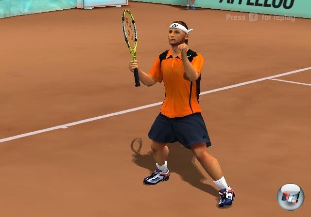 Nein, realistisches Ausholen und Schlagen würde es in der Wii-Umsetzung nicht geben. Das wussten die Entwickler schon vor mehr als einem Jahr. Stattdessen ahmt ihr die Bewegungen eures Tennis-Profis nur vage nach – je besser euer Timing, desto genauer und härter geht der Ball übers Netz. Gezielt wird dabei mit dem Analogstick des Nunchuks, die Schlagbewegung wirkt sich nicht auf die Flugbahn aus. Auch Top Spin imitiert somit lediglich einen kleinen Teil des wirklichen Sports und erinnert damit an Sega Superstar Tennis oder Wii Sports. Im Gegensatz zu Segas Maskottchen-Parade dürft ihr euch hier jedoch nicht für eine vereinfachte Steuerung entscheiden, mit der die Athleten entweder automatisch in Richtung Ball laufen oder mit der ihr per Digikreuz rennt, während ihr ganz klassisch über die Tasten 1 und 2 einen Schlag ausführt. Für alle, die wenig Platz vor dem Fernseher haben, könnte es deshalb eng werden – gerade beim Doppel mit bis zu drei Freunden dürften etliche Wohnzimmer aus allen Nähten platzen! Der Steuerungs-Zwang ist umso ärgerlicher, weil die Strippe zwischen Nunchuk und Remote erstens zu kurz und zweitens ohnehin ständig im Weg ist. Wer damit Schwierigkeiten hat, wird mit Top Spin 3 selbst im Einzelnspiel nicht glücklich.