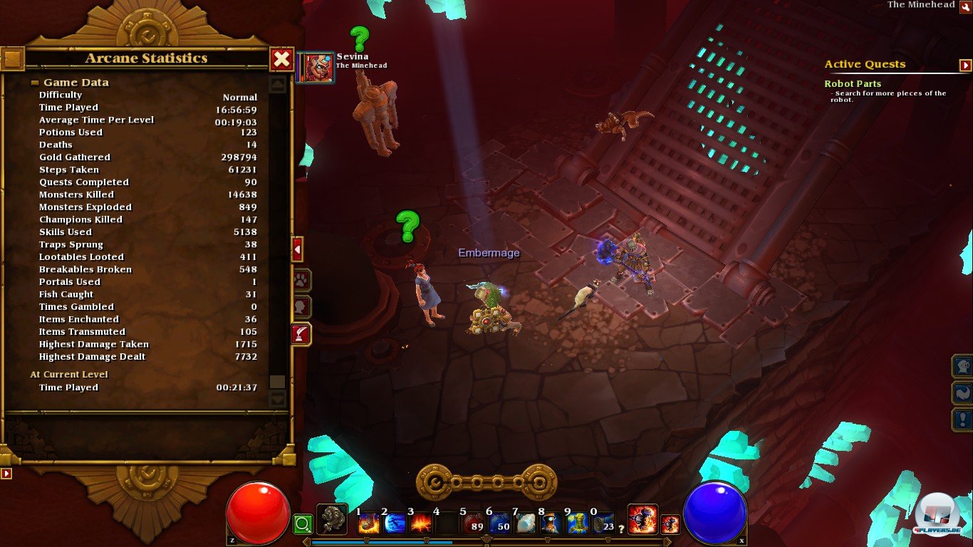 Zwischen den Schwierigkeitsstufen „Casual“, „Normal“, „Veteran“ und „Elite“ dürft ihr zu Beginn (nach der Charakter-Erstellung) wählen – sogar eine Hardcore-Variante, in der der Charakter dauerhaft sterben kann, gibt es als Option. Sonderlich schwer war Torchlight II auf Stufe „Normal“ nicht. Ein kooperatives Zweier-Team aus „Engineer“ und „Embermage“ hatte in den ersten zwei Akten keine Probleme – sonderlich viele Heiltränke waren dank einiger Heilfertigkeiten (Healbot) nicht von Nöten. Erst ab dem dritten Akt häuften sich sprunghaft die Spielertode – vor allem in den Herausforderungen, dem Akt III-Turm und bei gewissen Bosskämpfen mit Champions. Richtig schwer war es dennoch nicht, es wurde nur fordernder und bestrafte zu ungestümes Vorpreschen.