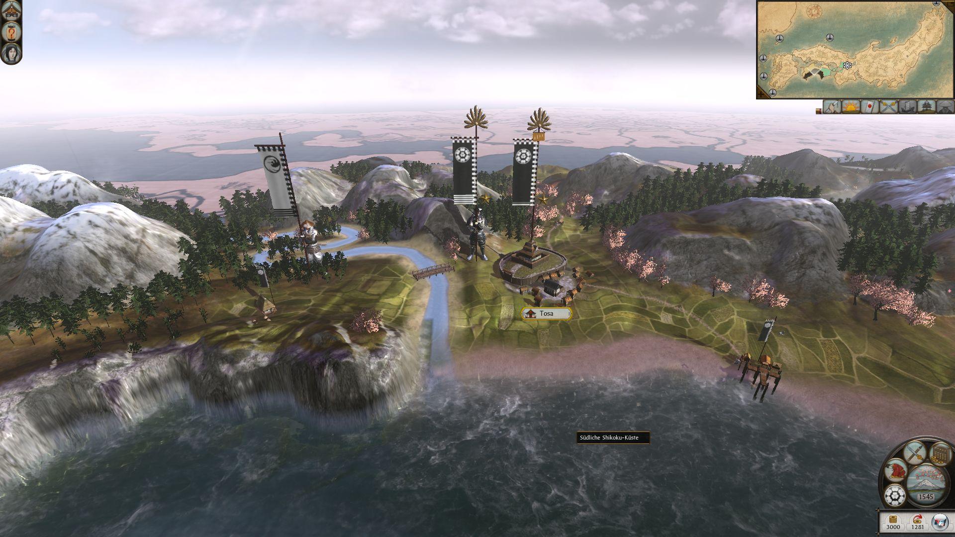 Jetzt sitze ich jedenfalls als Daimyo der Uesugi mit meinen Kampfmönchen in der Klemme, irgendwo im mittleren Westen Nippons, während es auf der Karte bedrohlich qualmt. Rebellen ziehen brandschatzend durch eine Provinz, denn die Bevölkerung hat aufgemuckt, weil ich die Ernte natürlich bunkern musste und vergessen habe, die Steuern zu senken. Ach ja: Ein General ist bei der Verteidigung einer Festung mit kompletter Besatzung gestorben – okay, ich habe ihn mit einer Einheit leichter Speerkämpfer etwas alleine gelassen. Ich halte nur noch drei von ehemals fünf Gebieten mit einer Armee; ein schmaler Streifen an der Küste. Zu schlimmer Letzt verbünden sich gerade benachbarte Clans gegen mich und lukrative Handelsabkommen werden gestrichen – na toll!