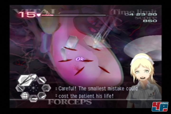 Und weiter geht’s im rasenden Neuerungs-Karussell: Drehte sich das DS-Vorbild ausschließlich um den schneidigen Jungarzt Derek »DS« Stiles, drängt hier im späteren Spielverlauf eine weitere spielbare Figur ins Geschehen, die nicht nur für ein zusätzliches Kapitel, sondern auch für ein alternatives Ende sorgt. Und es gibt jetzt mehrere Schwierigkeitsgrade zur Auswahl, die aber nichts an der steilen Lernkurve ändern: Nach ein paar Probe-OPs, bei denen euch noch die streng guckende Oberschwester auf die Finger schaut und gegebenenfalls auf selbige klopft, steht ihr ganz allein dem Tumor Auge in Auge gegenüber: Wer da nicht beherzigt, dass man vor dem Aufschnippeln besser desinfizieren sollte, oder nach dem Herumlasern das herumblubbernde Blut nicht per Drainage aufsaugt, verliert schneller einen Patienten als Scrubs-Nervenbündel Doug Murphy – das Spiel hält euren Blutdruck mit einem strengen Zeitlimit und unerwarteten Komplikationen konstant oben. Und das solltet ihr mit euren Patienten auch machen, bevor ein durchgehendes Fiepen eure Chirurgenkarriere beendet.