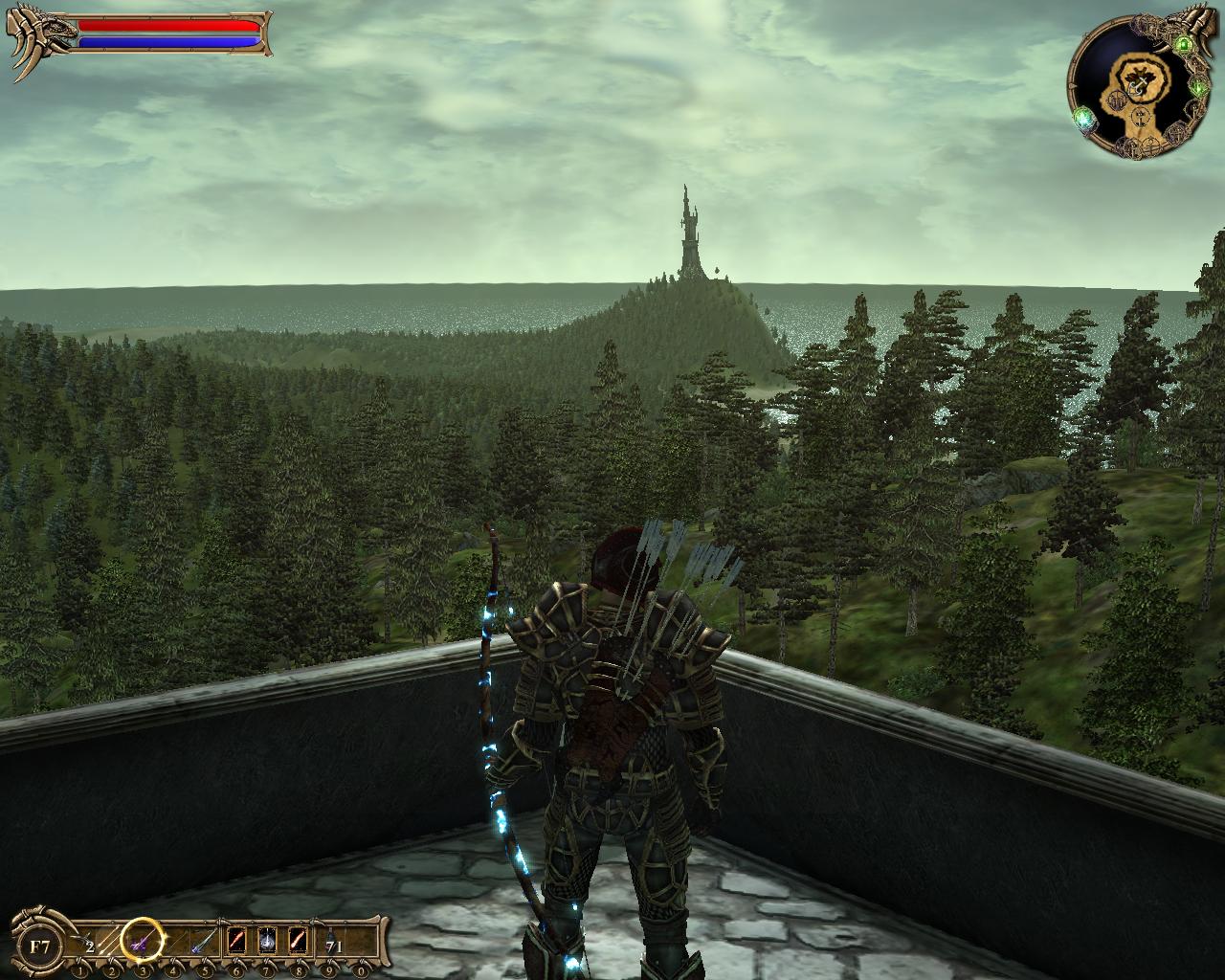 Wenn man mit dem Bogen im Anschlag durch die Nebelfelder im Garnowald pirscht, die Silhouetten von schwarzen Türmen im Hintergrund und ein Orklager auf zwölf Uhr entdeckt, kommt tolkien’sche Freude auf. Allerdings werden auch hier trotz voller Rechenpower entfernte Wiesen wie ein Teppich aufgerollt. Sprich: Schwammige Texturen in der Distanz werden erst beim Herangehen mit scharfen Texturen versehen – aber das ist nur ein kleiner Fleck auf der ansonsten prächtigen Weste, den auch Oblivion tragen musste.