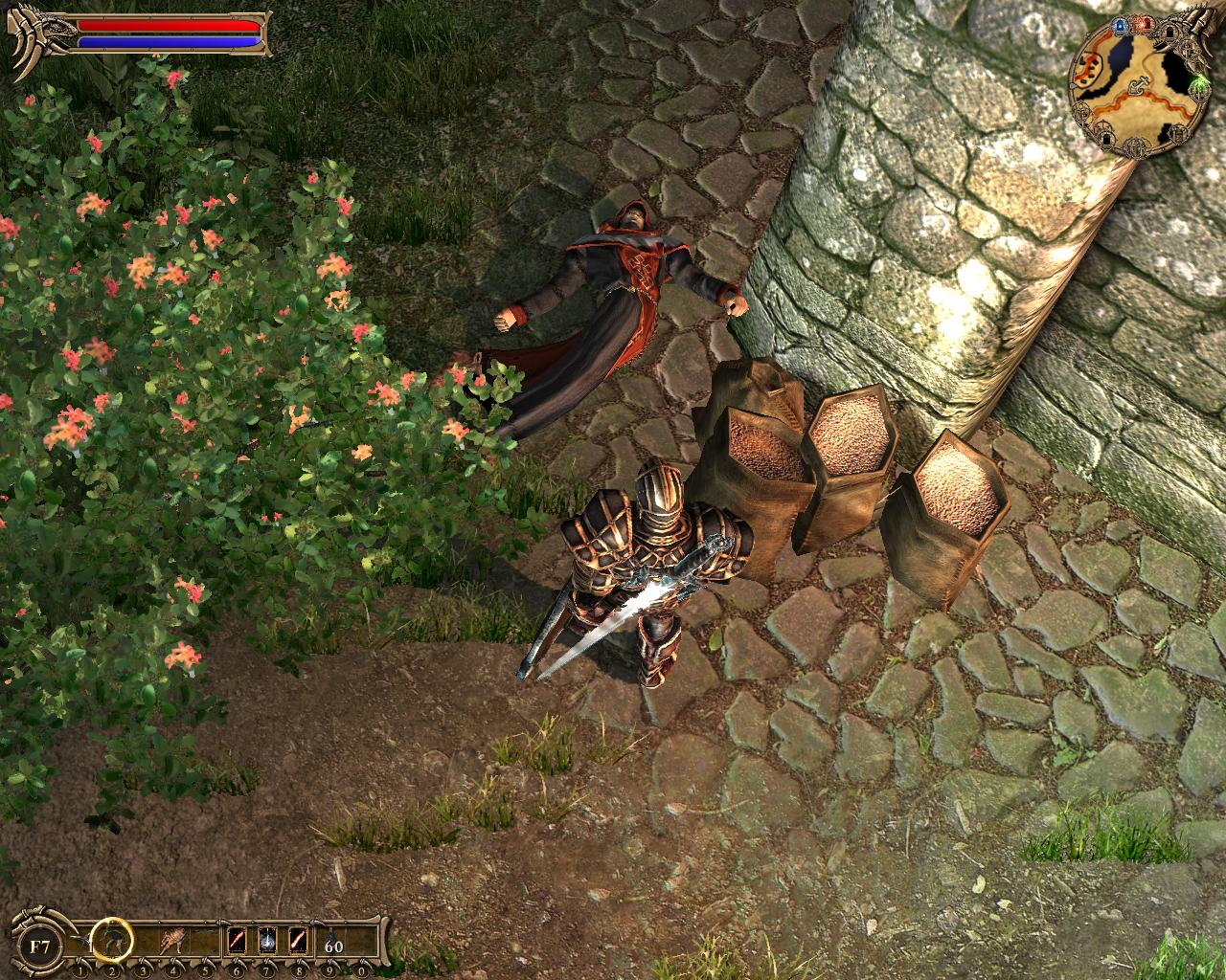 Obwohl manche Figuren tatsächlich einen Tagesablauf haben, also arbeiten, sammeln, schlafen oder verkaufen, scheint der Großteil der Bevölkerung recht stupiden Wegen zu folgen. Man betritt einen kleinen Raum manchmal zeitgleich mit sechs, sieben Figuren, die kurz darauf wieder hinaus treten. Obwohl die großen Städte belebt sind, was Passanten auf den Straßen angeht, obwohl sie euch grüßen, Straßen fegen oder manchmal etwas in ihren Bart murmeln, vermisst man z.B. auch mehr Frauenfiguren oder den echten Alltag einer Stadt mit lauthals rufenden Händlern, bunten Narren, kreischenden Kindern oder wenigstens Zwischenfällen. Selbst manches Online-Rollenspiel ist da heutzutage interaktiver oder streut instanzierte Dramatik über Überfälle & Co ein. An der Illusion einer lebendigen Metropole scheiterte schon Oblivion und auch Two Worlds kann nur mehr pompöse Fassade als echte Inhalte anbieten.