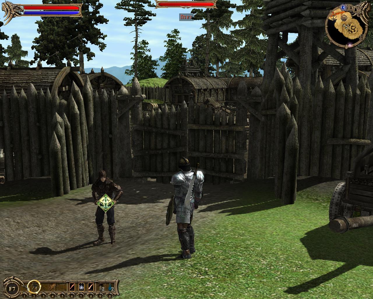 Trotzdem kann man das verschmerzen, denn Reality Pump hat immerhin deutlich mehr Stadtbewohner und Dörfler zu bieten als Oblivion. Die Fassade ist ansehnlicher, aber dafür gibt es hier auch mehr innere Logikprobleme. Schwer nachvollziehbar ist z.B. folgende Situation: Da ist ein geheimes Rebellenlager in den Bergen. Eine griesgrämige Wache namens Marcas steht vor dem Eingang. An ihr vorbei schleichen bringt nichts, denn das Schloss ist rot markiert und damit unknackbar. Warum eigentlich, wenn man erfolgreich geschlichen ist? Für echte Diebe ist Two Worlds weitaus weniger interssant als Oblivion, wo man mit der Graufuchs-Kampagne richtig gefordert wurde. Zurück zu Marcas: Man spricht ihn an und er verweigert barsch den Zutritt. Kein Wunder, denn man hat noch nicht den benötigten Rang. Bis hierhin ist alles okay. Es gibt allerdings auch keine Möglichkeit, die Wache in einem Dialogspiel zu überzeugen oder sie zu bestechen.