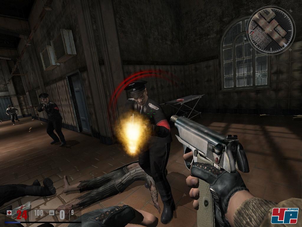 Immerhin verhalten sich die Gegner identisch doof: Da drehen Soldaten mal ihre Runden um euch, laufen an euch vorbei hin und her oder bleiben, höflich wie sie sind, im Türrahmen stehen bzw. rennen an selbigem auf der Stelle.