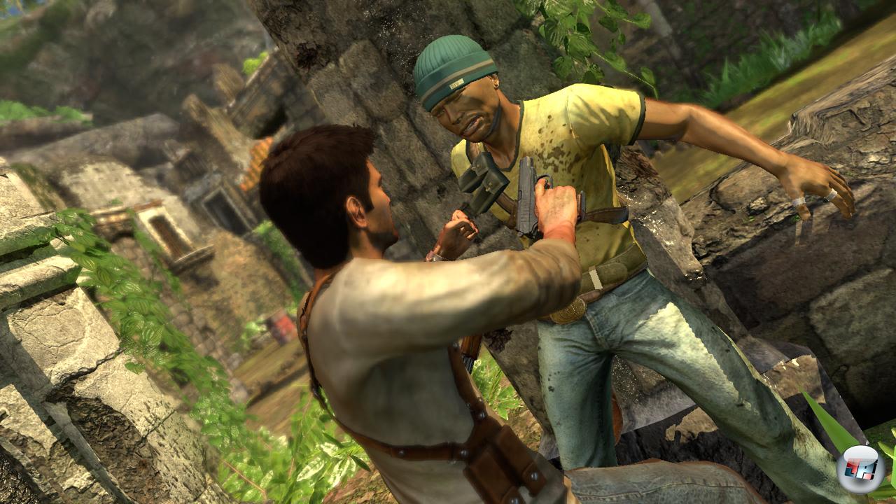 Im Zentrum steht allerdings nur einer und das ist Drake. Und der hat richtig viel Halsbrecherisches und Schussgewaltiges zu tun. All das macht er nur, um einem magischen Ziel näher zu kommen, das so viele Abenteurer bereits in den Wahnsinn trieb: Dem Schatz. Dem sagenumwobenen El Dorado. Diesem goldenen Mythos der Spanier, der versunkenen Stadt irgendwo im wilden Dschungel Südamerikas. Nicht nur Schriftsteller und Glücksritter zieht die Aussicht auf unermesslichen Reichtum an, auch Gangster und Kriminelle wollen die Früchte der vergoldeten Frührente genießen. Leider verpasst es Naughty Dog trotz gut inszenierter Zwischensequenzen, hier wirklich charismatische Antagonisten aufzubauen. Die zwei Typen, die einem begegnen, übernehmen quasi ohne Biographie einfach so die Feindbildrolle. Also streckt Drake die vielen Namenlosen nach allen Regeln der ballistischen Kunst nieder…und das immer wieder…