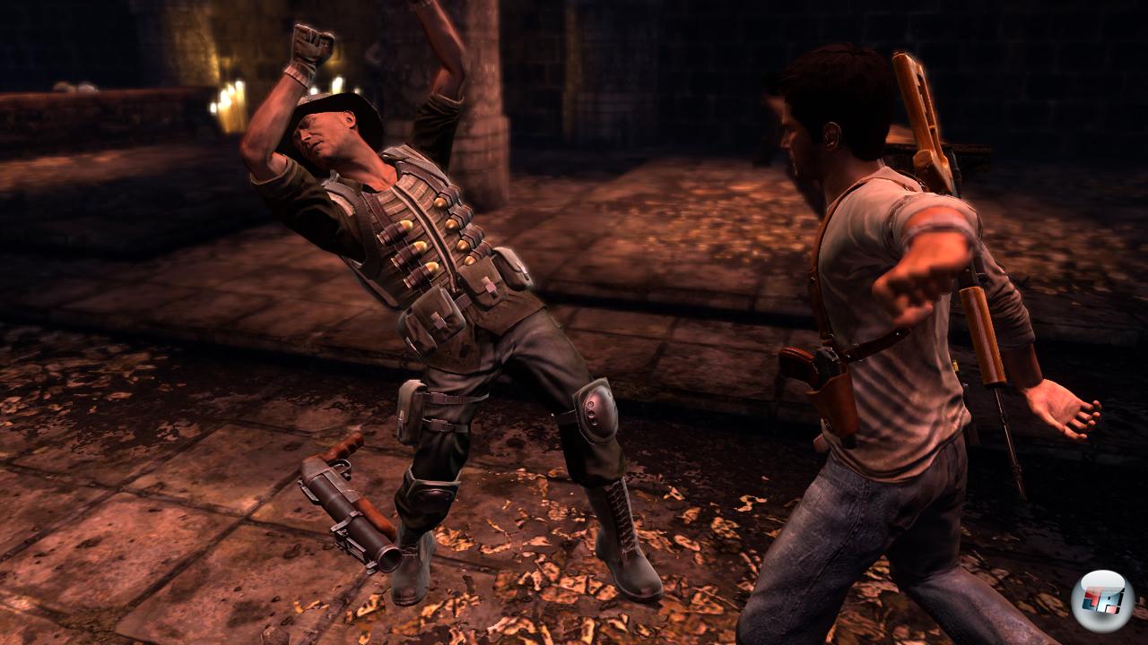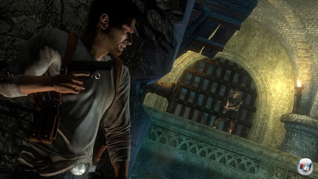 Aber Naughty Dog kann diese Schwächen im Adventure-Bereich des Spiels im letzten Drittel ausgleichen. Da wird endlich mal die komplette Umgebung in eine Art Rätselspielplatz verwandelt: Drake muss Zahlenplatten folgen und nacheinander bestimmte Mechanismen in Gang bringen, um vom Startpunkt zum Ziel zu gelangen. Das Leveldesign ist hervorragend, der Schwierigkeitsgrad ist angenehm und man fühlt sich angesichts all der Apparaturen und Räderwerke fast an Myst erinnert. Außerdem durchbricht man hier endlich den Wechsel von Ballerei und Rätselei, den man bis dahin fast immer vorausahnen konnte, indem man Drake schon während des Knobelns attackiert – sehr gut!