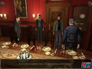 berühmtem Kriminalroman „And then there were none“ (1939), der auf Deutsch politisch unkorrekt „Zehn kleine Negerlein“ heißt und auch bereits verfilmt wurde. Der geheimnisvolle Rächer bleibt zunächst hübsch im Dunkeln, so dass es an euch ist, ihm die Maske zu entreißen. Niemand scheint das Gastgeberehepaar Owen allerdings je zu Gesicht bekommen zu haben. Eines aber ist anders als im Buch: Ihr übernehmt den Part der elften Person, dem jungen Patrick Narracott, der ohne in die Sache selbst verstrickt zu sein in die Rolle des Detektivs schlüpft. Er passt durch seine forsche Art und seine Kleidung jedoch nicht ganz in die eher betulichen 30er-Jahre, in denen die verzwickte Story spielt. Ursprünglich hat er die Gäste auf die Insel gebracht, doch sein Boot wurde seltsamerweise zerstört. Außerdem tobt ein wilder Sturm vor Englands Südküste, so dass vorerst niemand Shipwreck Island verlassen kann.Loch im Bauch