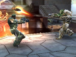 Bei der Waffenauswahl hat Epic versucht, den Spieler etwas zu entlasten. Damit ihr während der Kämpfe nicht auch noch ständig durch ein ganzes Arsenal schalten müsst, legt ihr euch vor dem Match einfach auf zwei Schusswummen fest, die neben eurer Nahkampfwaffe zum Einsatz kommen. Die Auswahl erstreckt sich dabei von Laserwaffen über Elektroschocker bis hin zu Raketenwerfern und Scharfschützengewehren.