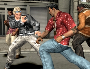 aber nie über »Alarm für Cobra 11«-Niveau hinaus. Nicht zuletzt, weil sich ausnahmslos jede Mission um »Geh da hin und haue alle Anwesenden zu Klump!« dreht. Gelegentlich wird dieses Schema auch breiter gefächert: mal müsst ihr die Gegner innerhalb eines Zeitlimits verprügeln, mal müsst ihr eine Person schützen, mal einem bestimmten Feind nur die Beine brechen; alle paar Missionen wartet außerdem ein besonders starker Bossgegner auf seine verdiente Abreibung. Für erfolgreiche Kämpfe bekommt ihr ein paar Erfahrungspunkte, die ihr in euren Körper investieren und so eure Schlagkraft, eure Zähigkeit oder die Power eurer Spezialangriffe verbessern könnt. Und so geht es in einer Reihe immergleich weiter: Missionsbeschreibung, Prügelei, Punkte investieren, speichern, Missionsbeschreibung, Prügelei, uswusf. Das Ironische daran: Kaum ein Kampf dauert länger als zwei Minuten, dafür bringt euch fast jede Prügelei dem Spielende einen Prozentpunkt näher. Lange Rede, kurzer Sinn: Länger als drei Stunden werdet ihr kaum brauchen, um euch zum Finale durchzuholzen.Auf dem Weg da hin seid ihr wenigstens nicht allein: Im Laufe der Zeit füllt sich euer Partner-Kader mit immer mehr Schlägern diverser Kampfstile, so dass ihr vor den meisten Missionen einen Kumpanen wählen dürft, der selbständig loslegt. Ihr könnt ihm sogar rudimentäre Befehle geben, nach Hilfe schreien oder spektakuläre Team-Manöver durchführen. Trotzdem empfiehlt die Einsamer-Wolf-Fraktion der 4Players-Redaktion den Verzicht auf die Haudrauf-KI. Warum? Weil Namco es aus irgendeinem Grund für eine super Idee hielt, den Kämpfer sofort zu wechseln, sobald man niedergeschlagen wurde. Sprich: Ihr schlagt drauflos, bekommt ein paar Mal auf die Mütze und schwupp –