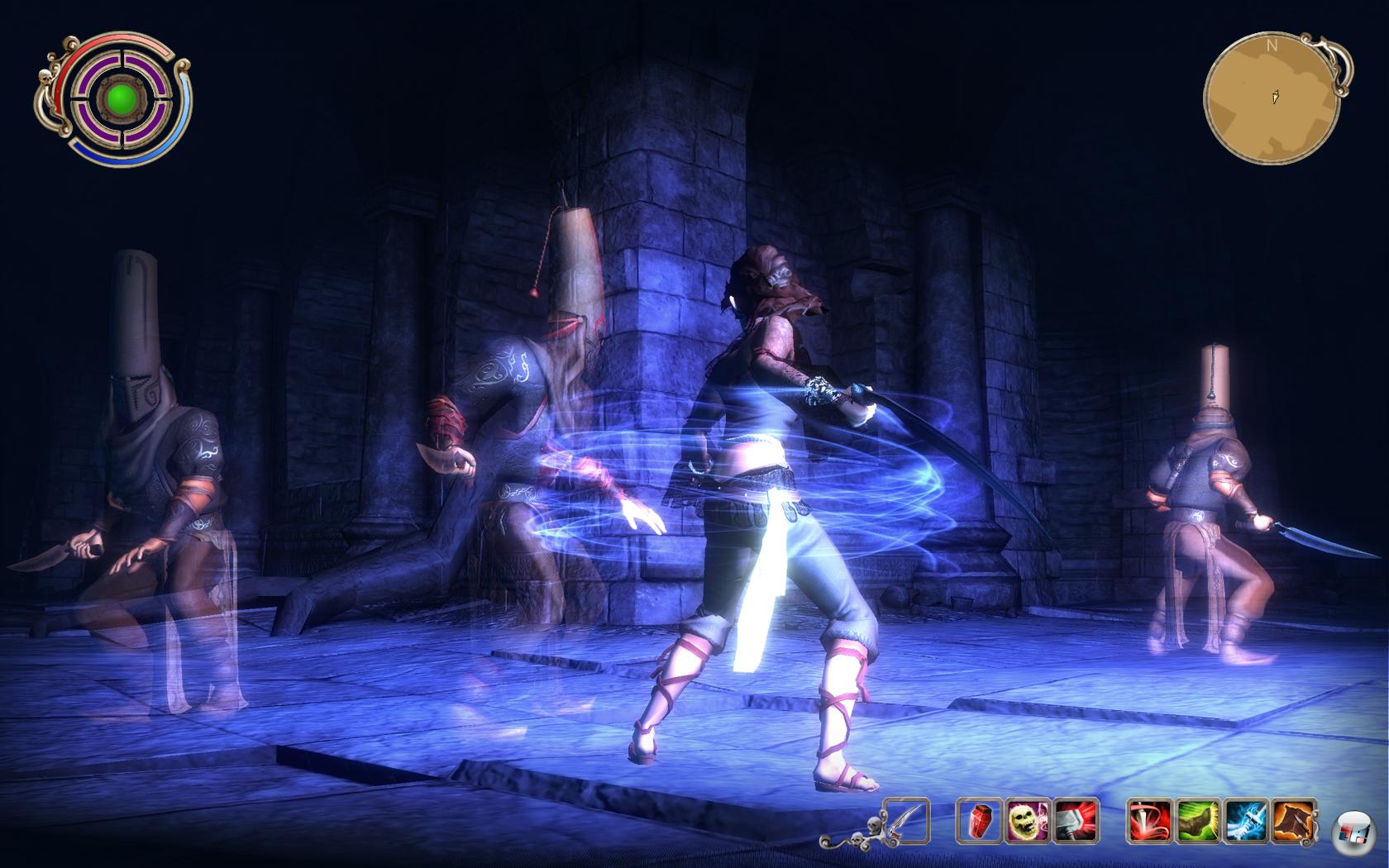 Welche Fähigkeiten ihr lernen oder verbessern wollt, bestimmt ihr selbst anhand körperlicher und geistiger Skilltrees, die euch den Umgang mit verschiedenen Waffen erlauben, spezielle Talente wecken oder übersinnliche Kräfte hervorbringen. Als Tochter des Sensenmanns ist selbst das Jenseits euer Verbündeter. Kommt ihr im Kampf zu Tode, dauert es nicht lange bis ihr mit neuen Kräften wieder ins Diesseits zurückkehrt und an euren überraschten Peinigern Rache nehmen könnt. Die Zeit im Reich der Toten, das parallel zur Welt der Lebenden existiert, kann dazu genutzt werden sich geschickt zu positionieren, um nach der Inkarnation den sich langsam abkehrenden Widersachern in den Rücken zu fallen oder sich erst mal außer Reichweite zu bringen. Unsterblich ist Scarlett allerdings nicht: Jedes Ableben schluckt einen Teil ihrer nur mit einem speziellen Dolch (Mondklinge) aufladbaren Schattenenergie, die sie aus den Seelen ihrer Opfer schöpft. Ist diese verbraucht, heißt es auch für die Tochter des Todes: Game Over.