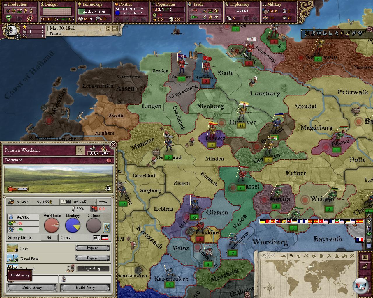 ihr Land einfach durch Kolonisierung des Westens, während Preußen auf seine schlagkräftige Armee setzt, um seine Nachbarn gefügig zu machen. Frankreich hingegen setzt eher auf kulturelle Entwicklung, um mehr Einfluss zu bekommen. Das Ansehen in der Welt ist dabei der Dreh- und Angelpunkt: Diejenige Nation, die beim Prestige ganz vorne steht, hat gewonnen. Jeder Fortschritt, jede Eroberung oder kluger Künstler bringt Prestige. Daher ist es nicht ganz fair, dass ausgerechnet hier immer wieder Zufallsereignisse reinspielen. So bringt der Bau des Arc de Triomphe einen Prestigezuwachs in Punkten, für den man gar nichts kann.