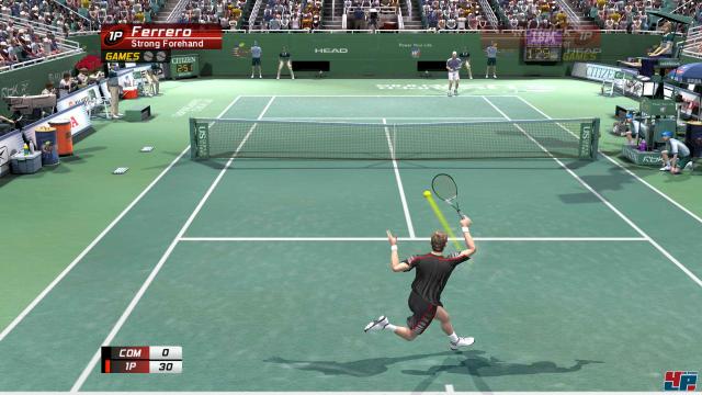 Im Zentrum steht die Position des Spielers: Nur, wenn ihr optimal zum Ball steht und genug Zeit zum Ausholen habt, könnt ihr sowohl besonders harte Topspin-Granaten, besonders weite Slices als auch fiese Stopps spielen. Ihr könnt Tempo rausnehmen und reinbringen, ihr könnt als Grundlinienspieler die Distanz oder als Serve&Volleymann die Nähe zum Netz bevorzugen. Es gibt im Gegensatz zu Top Spin 2 <a class="DYNLINK" onmouseover="DynToolTipp_Show('Klicken für Gameinfos‚)“ onmouseout=“DynToolTipp_Hide(); “ href=“javascript:DynCont_Display(‚Gamefinder‘,’runmod.php?sid=%7BSID%7D&LAYOUT=dyncont_gf&spielid=7837′)“> keine komplizierten Spezial- oder Powerschläge, ihr könnt nichts aufladen oder auslösen – jede Figur behandelt den Filzball ganz einfach so wie sie zu ihm steht und wie sie ausholt. Und genau diese Beschränkung auf das Wesentliche lässt einen sofort abtauchen in die Jagd um Punkte; diesmal übrigens endlich wahlweise mit mehreren Gewinnsätzen.