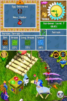 | Schon nach kurzer Zeit wuseln jede Menge putzige Kreaturen durch euren Garten. Anders als auf dem Screenshot wurde der Großteil des Bildschirmtextes übrigens ins Deutsche übersetzt. |