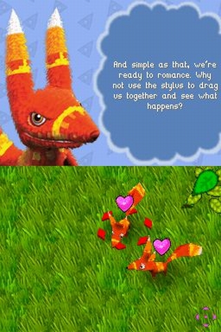 Habt ihr zwei Vertreter einer Spezies mit einem romantischen Mal in Stimmung gebracht, dürft ihr sie miteinander verkuppeln. Keine Bange, das Liebesspiel ist nach wie vor brav in Szene gesetzt: Die Turteltauben verziehen sich in ihr Liebesnest und führen dort einen Paarungstanz auf. Passend dazu wird kurz darauf ein Ei vom Klapperstorch geliefert. Dem Ritual wohnt ihr in kleinen Renderfilmchen bei. Die jugendfreien, aber skurrilen Verränkungen der Piñata-Tierchen sind weitaus unterhaltsamer als die gelegentlich eingestreuten Slapstick-Episoden aus der Fernsehserie.