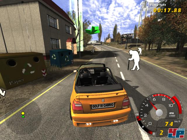 Beim legalen Rennen sind schnelle Reaktionen gefragt, wenn ihr den sich bewegenden Papp-Aufstellern ausweichen müsst.