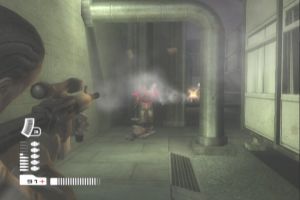 Während der ersten Schritte durch die tristen Fabrikhallen denk ihr euch vielleicht noch, dass ihr einfach zu ungeschickt seid, den ersten der sechs spielbaren Protagonisten zielsicher durch die Gänge zu lotsen. Doch schon bald wird klar, dass Steuerung und Spielansicht einfach nicht zusammenpassen. Aus der Ego-Perspektive wäre vielleicht alles in Ordnung gewesen, aber bei dieser versetzen Schulteransicht funktioniert das vorgeschriebene Tastenlayout einfach nicht – vor allem, da das Zurücksetzen der Kamera nie so klappt, wie es eigentlich sollte. So stolpert ihr von Gegnerpulk zu Gegnerpulk und hofft, dass wenigstens die großzügige Zielautomatik ihren Dienst verrichtet.