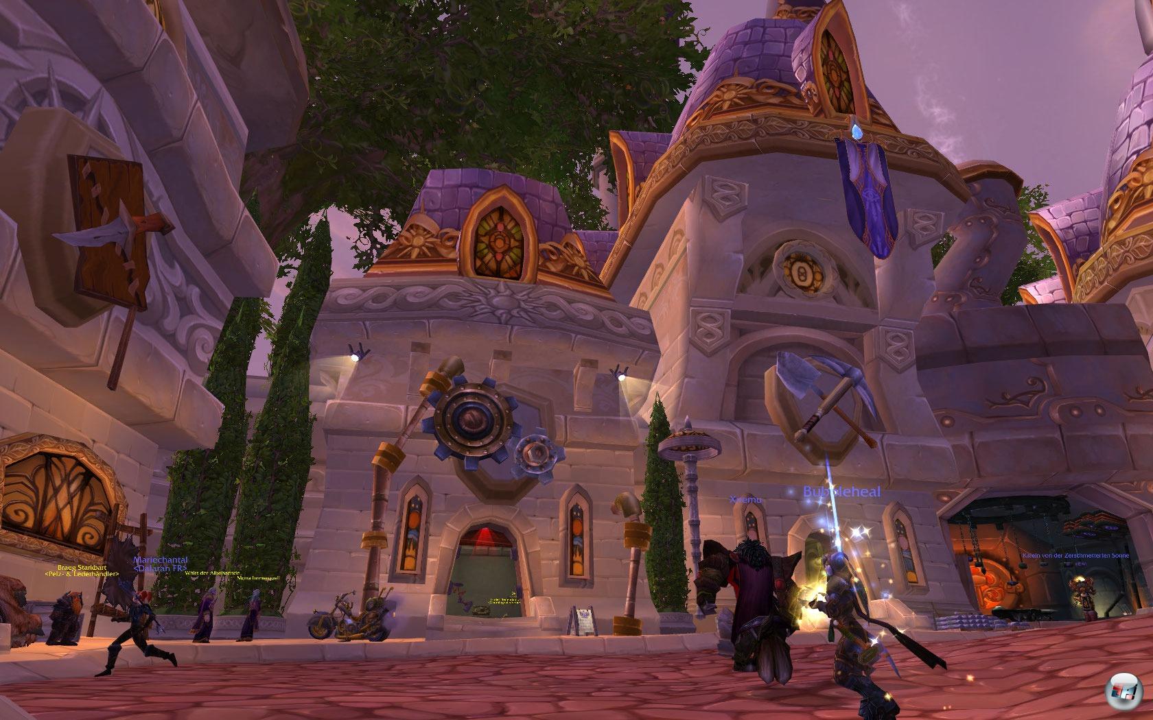 Die Hauptstadt Dalaran ist ein Augenschmaus im Vergleich zum biederen Shattrath und bietet ein sehr schmuckvolles sowie aufgeräumtes Händlerviertel.