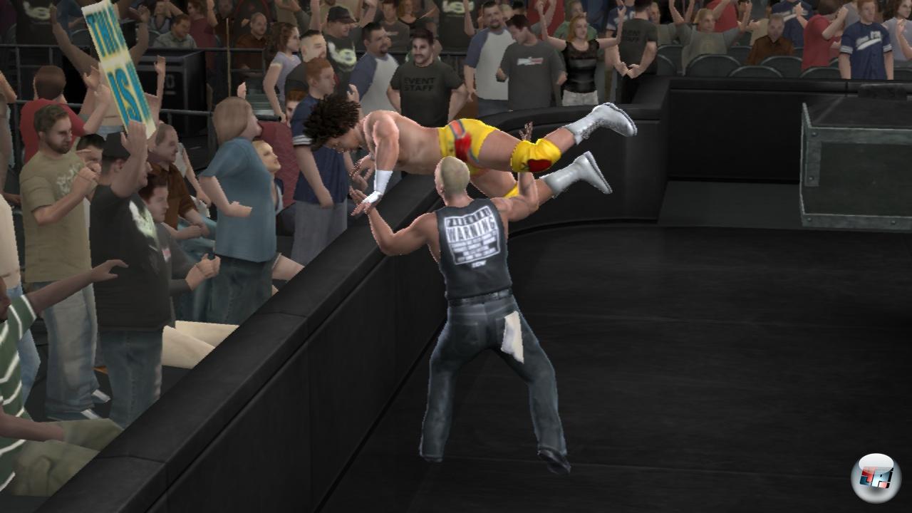 Die Kulisse hingegen hatte den Schritt in Richtung aktueller Konsolen-Generation nur eingeschränkt vollzogen. Die Wrestler sahen im Allgemeinen zwar besser aus als je zuvor. Doch letztlich wirkte alles „nur“ wie eine hoch aufgelöste Version der PS2-Engine. Vor allem die seinerzeit immer noch stocksteifen Haare und scheinbar nicht aus der Engine herauszukriegenden Clipping-Fehler bei Ringseilen usw. machten deutlich, dass der Grafikmotor auch in der vermeintlich „nächsten Generation“ weiterhin mit bekannten Problemen zu kämpfen hatte.