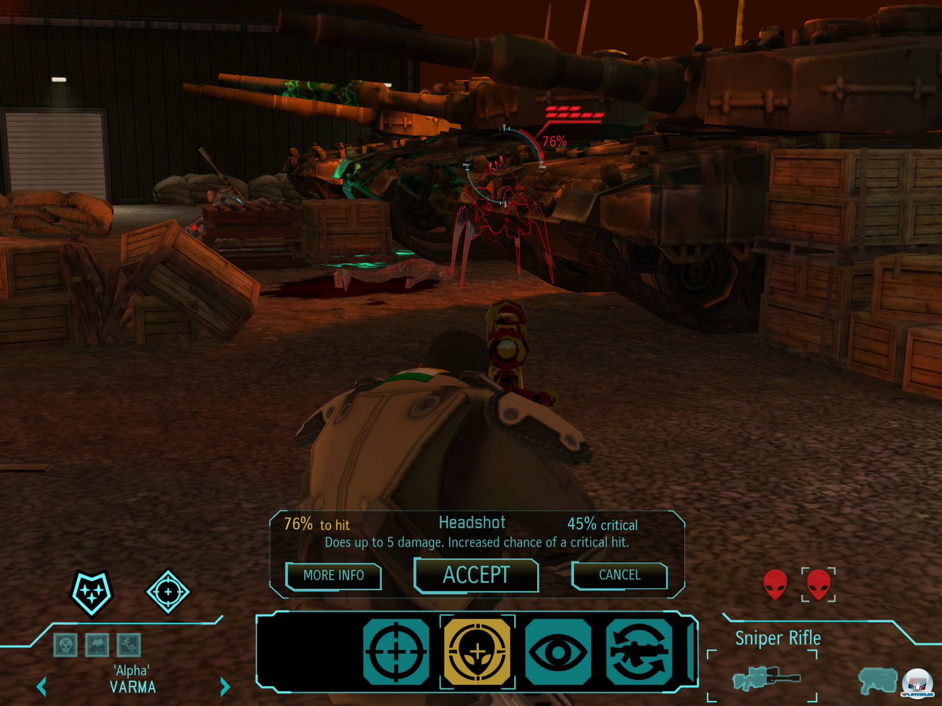 Die taktischen Kämpfe der vier bis sechs Soldaten gegen eine Übermacht Außerirdischer waren der Dreh- und Angelpunkt. Feldherren bewegten ihre Einheiten von einer Deckung zur nächsten, wo sie entweder auf den Feind feuerten oder sich verschanzten. Spezielle Fähigkeiten von Sturmsoldat, Scharfschütze, Sanitäter oder Träger eines schweren MGs machten die Männer und Frauen besonders wertvoll: Der eine sprintet doppelt so weit und kann im selben Zug noch feuern, der andere erzielt wichtige Treffer über weite Distanzen,