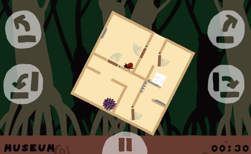 In vielen vertrackten Situationen kommen dem Käfer dabei präzise motorische Fähigkeiten zugute, mit denen er nicht nur punktgenau springen, sondern die Würfel auch während des Kippens in Schräglage halten oder beliebig schnell in eine Richtung senken kann. Das ist vor allem dann wichtig, wenn Fallobst oder in der Kiste befindliche Würfel durch das Labyrinth aus Stegen manövriert werden müssen. Fallobst muss raus – Kisten braucht der kleine Kribl dafür gelegentlich als Trittbretter. Wann muss er die Kiste wie drehen, damit der Würfel später am rechten Fleck liegen bleibt? Dank weniger, aber ausgereifter physikalischer Verhältnisse spielt dabei sogar der richtige Schwung beim Kippen eine wichtige Rolle.