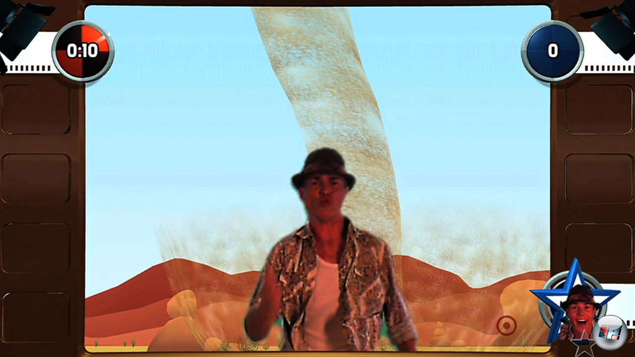 Doch man wollte sich offenbar nicht nur darauf verlassen, dass es ganz unterhaltsam sein könnte, wenn sich Spieler gleich welchen Alters vor einer Kamera verrenken und Grimassen schneiden und hat ein auf dem Papier cleveres Konzept eingebaut: Man zeichnet die Aktionen auf (dank Festplatte wunderbar möglich), baut sie in kleine Trash-Film-Trailer ein und schwupps, kann man den Spieler zum Schauspieler machen. You’re in the Movies (YitM) war geboren.