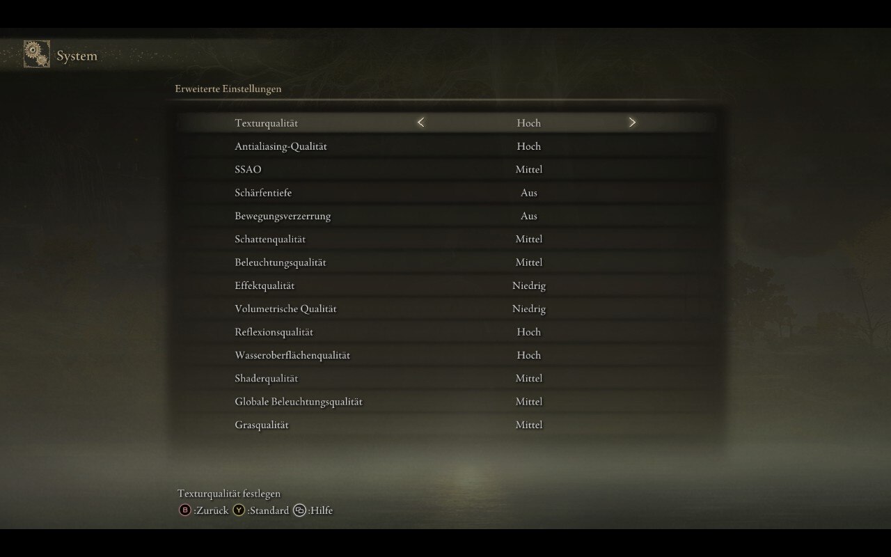 - Shaderqualität: Hoch (Einfluss auf die Performance ist minimal, optional auf Mittel stellen)