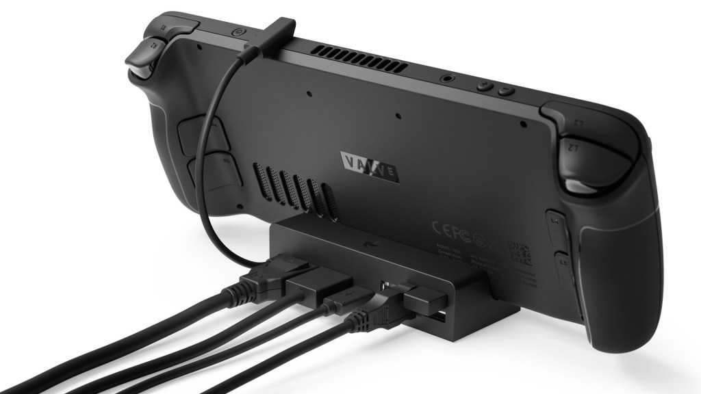 Mit dem Dock könnt ihr euer Steam Deck mit einem Fernseher oder Monitor verbinden. Sogar Ethernet ist dann möglich. Credit: Valve / Steam Deck